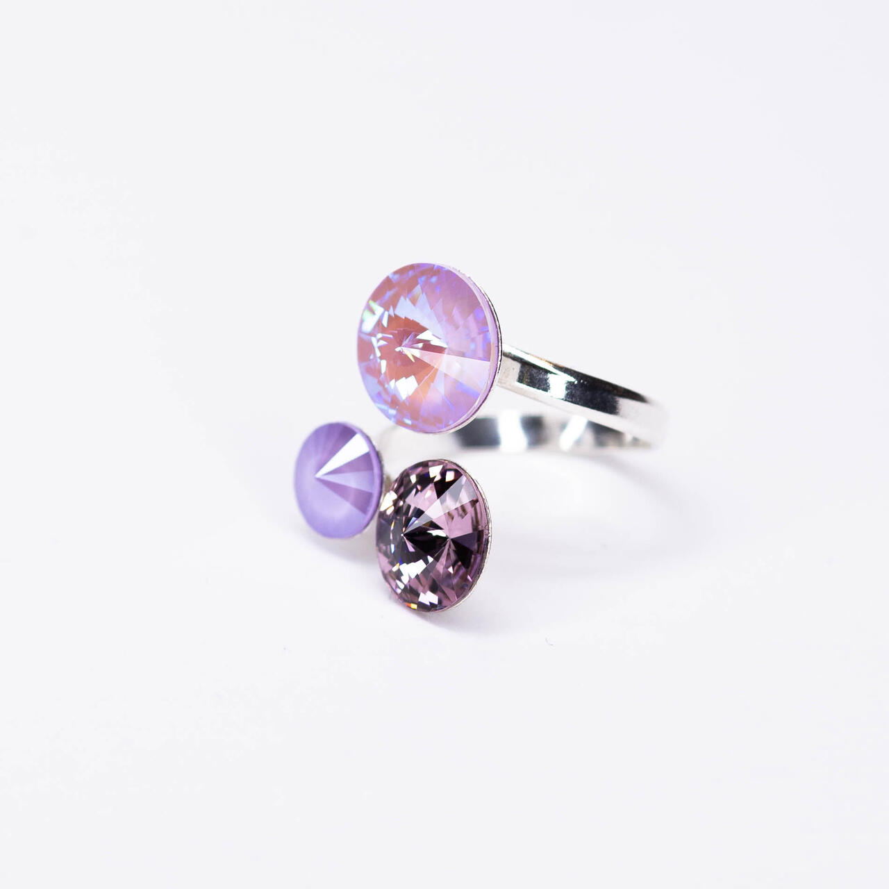 Swarovski kristallid on kinnitatud niklivaba hõbeda (925) põhjale. Sõrmused on reguleeritavad. Kristalli suurused 12mm, 10mm ja 8mm.