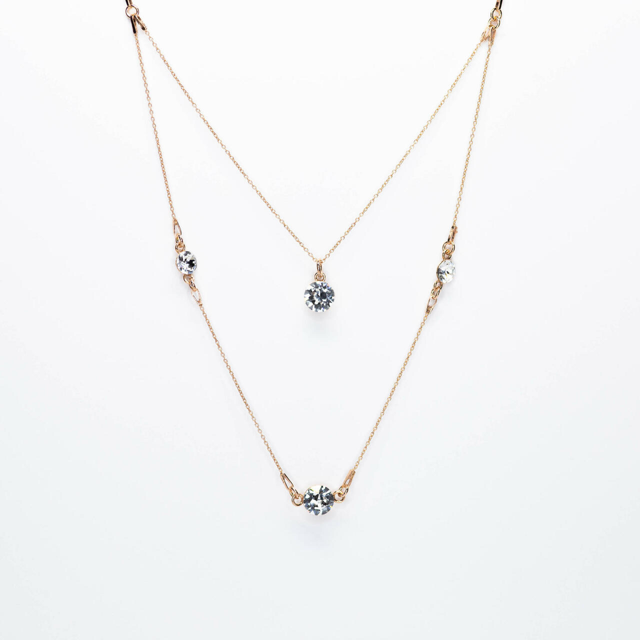 tooni kullaga. Ehted on niklivabad. Kaelakeed kaunistab neli Swarovski kristalli suuruses 6mm ning 8mm. Kaelakee koosneb kahest ketist 40cm ja 45cm.